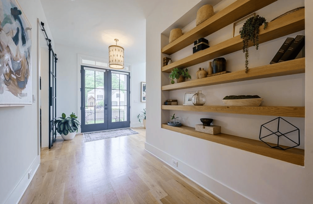 Upon entering this exquisitely crafted home, you are welcomed by ten-foot ceilings, wide plank natural white oak flooring, and custom built-in shelving. The abundance of windows boasts natural light that spans across each corner, creating an enviable entrance into this special home.