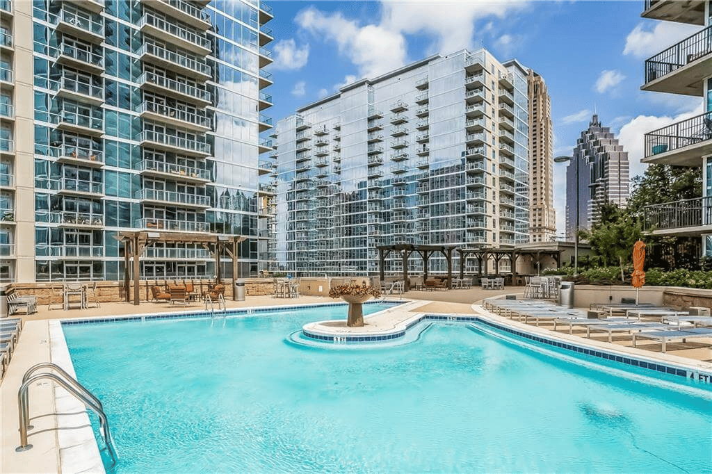 1010 Midtown is located on Peachtree Street between 11th and 12th Streets in Midtown. This 35-story luxury Atlanta high-rise condominium has 425 residential homes and features unique architecture, expansive floorplans, and premium luxury finishes. At street level, 1010 Midtown offers 38,000 sq ft of upscale retail space. Amenities at this luxury condominium include: 24-hr concierge, front desk security, fitness center, theater/media room, resident lounge, sky park, private skyline pool, cabanas, grilling area, and pet friendly community. The condos for sale at 1010 Midtown are located in a central Midtown location, walking distance to Piedmont Park, the High Museum of Art, the Atlanta Botanical Gardens, the Midtown MARTA station, and the Fox Theatre.